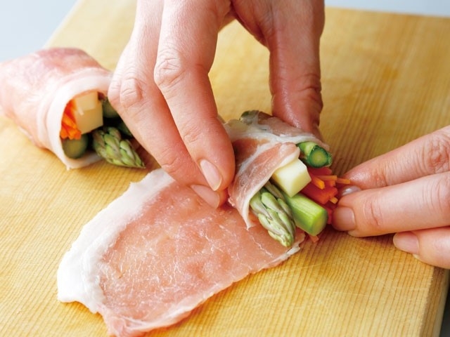 Stuffed and Rolled Pork with Cheese and Asparagus